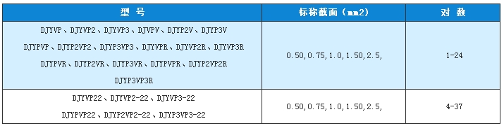 DJYVP | 聚乙烯絕緣對絞組銅線編織總屏蔽聚氯乙烯護套計算機電纜 | 固定敷設在室內、電纜溝或管道內 |